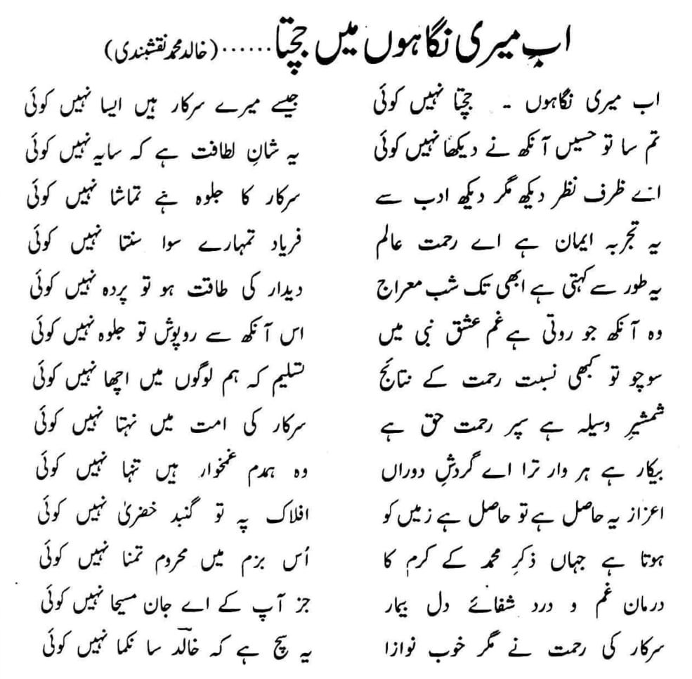 AB MERE NIGAHOON MEIN JACHTA NAHI KOI NAAT LYRICS
