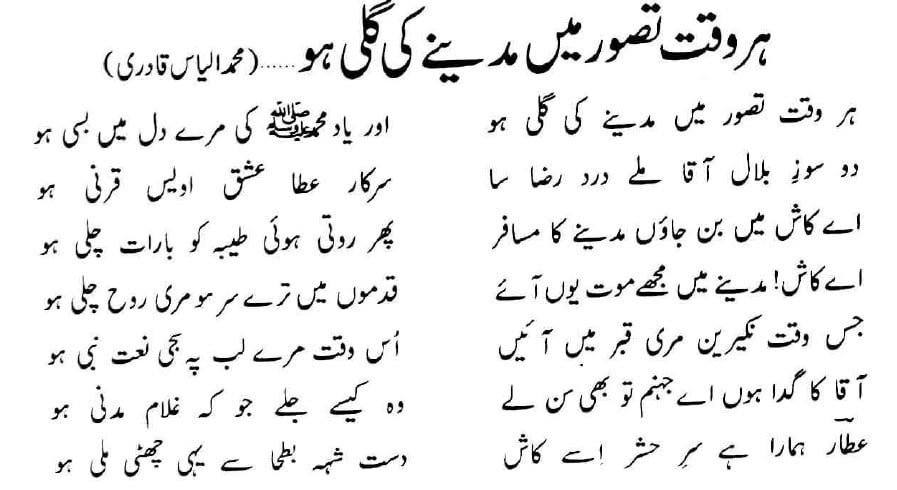 HAR WAQT TASAWWUR MEIN MADINE KI GALI HO NAAT LYRICS IN URDU